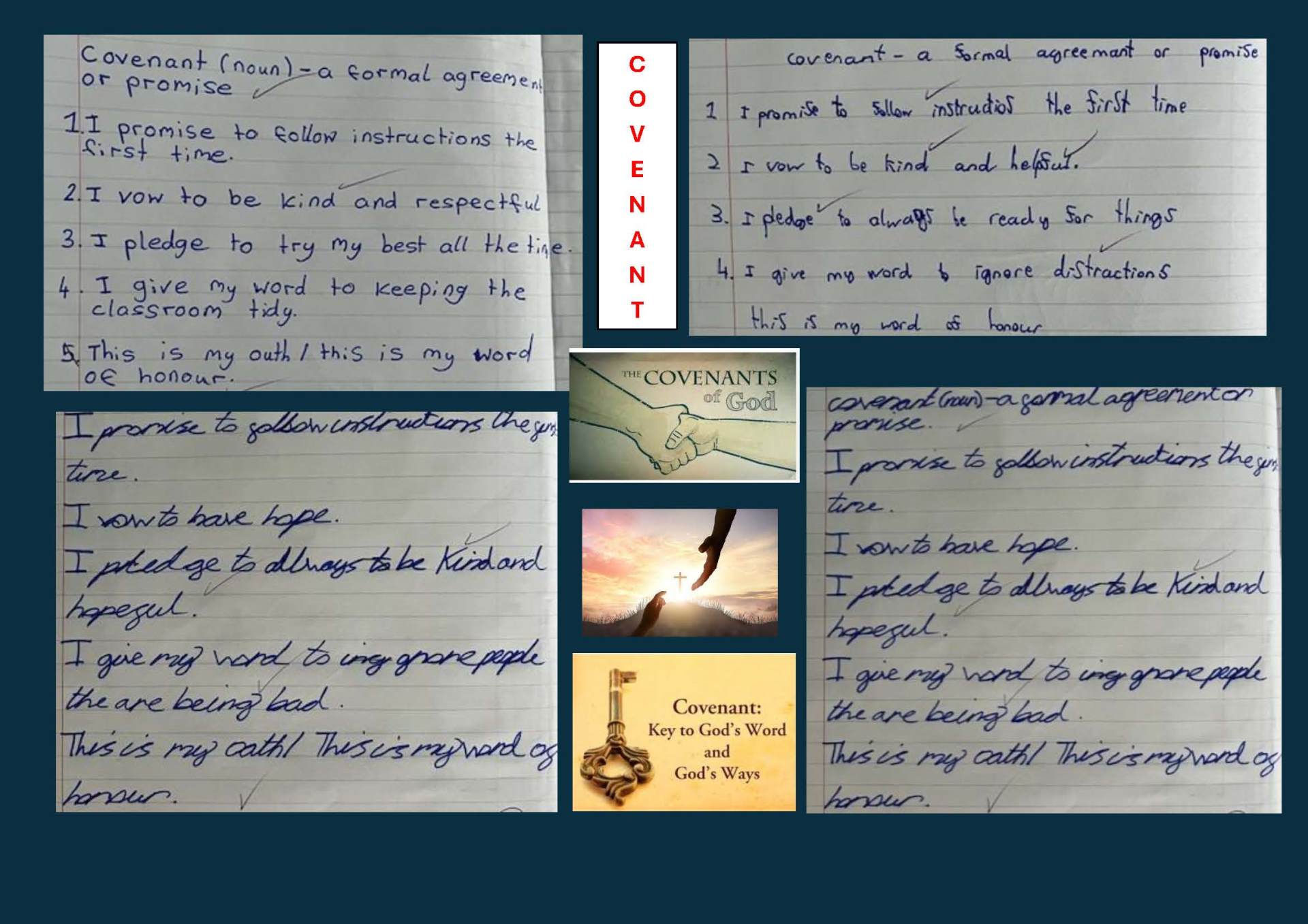 In class, we made our own covenants (promises) to highlight how we believe in God and are followers of Jesus.