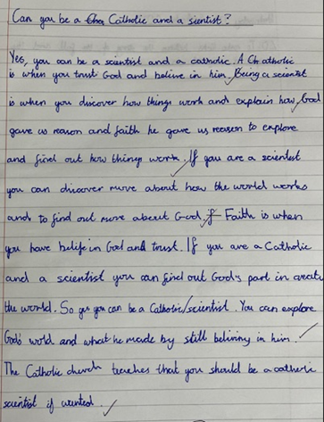 However, in this topic we learnt that this is untrue and that we as Catholics are encouraged by the church to be scientists and to explore the world that God has gifted us.