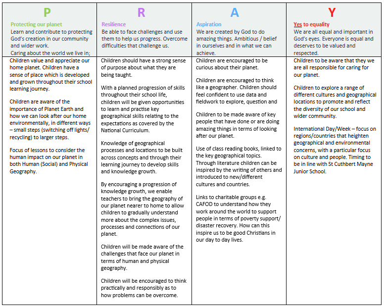 Our Geography Curriculum Vision – PRAY