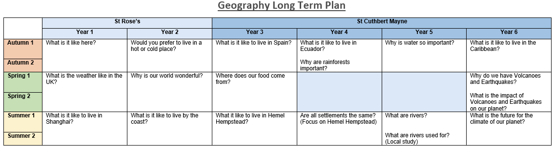 Geography at St Rose's Infants and St Cuthbert Mayne Juniors