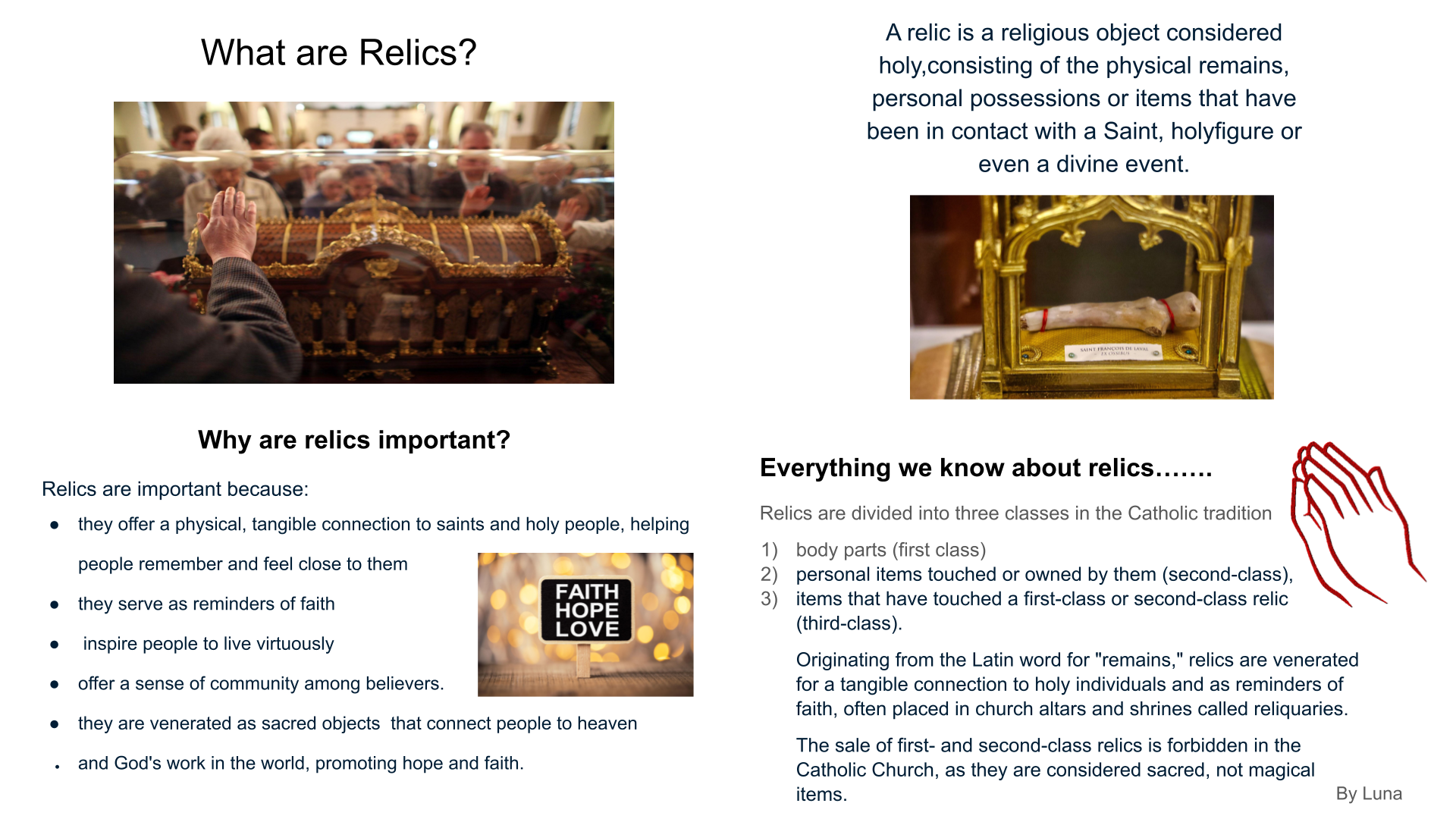 We encourage you, if you get the opportunity, to visit relics so that you too may feel this special bond and closeness to God, Jesus and the saints.